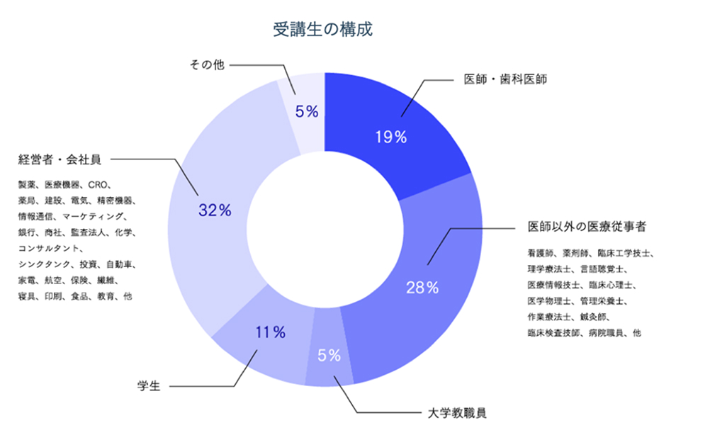 「医療人 2030」がお届けする各領域のトップランナーである著名な講師陣による白熱講義、そして多様なバックグラウンドの参加者との交流に乞うご期待! 参加者の感想はこちら |
